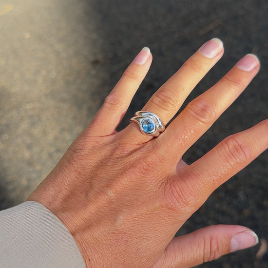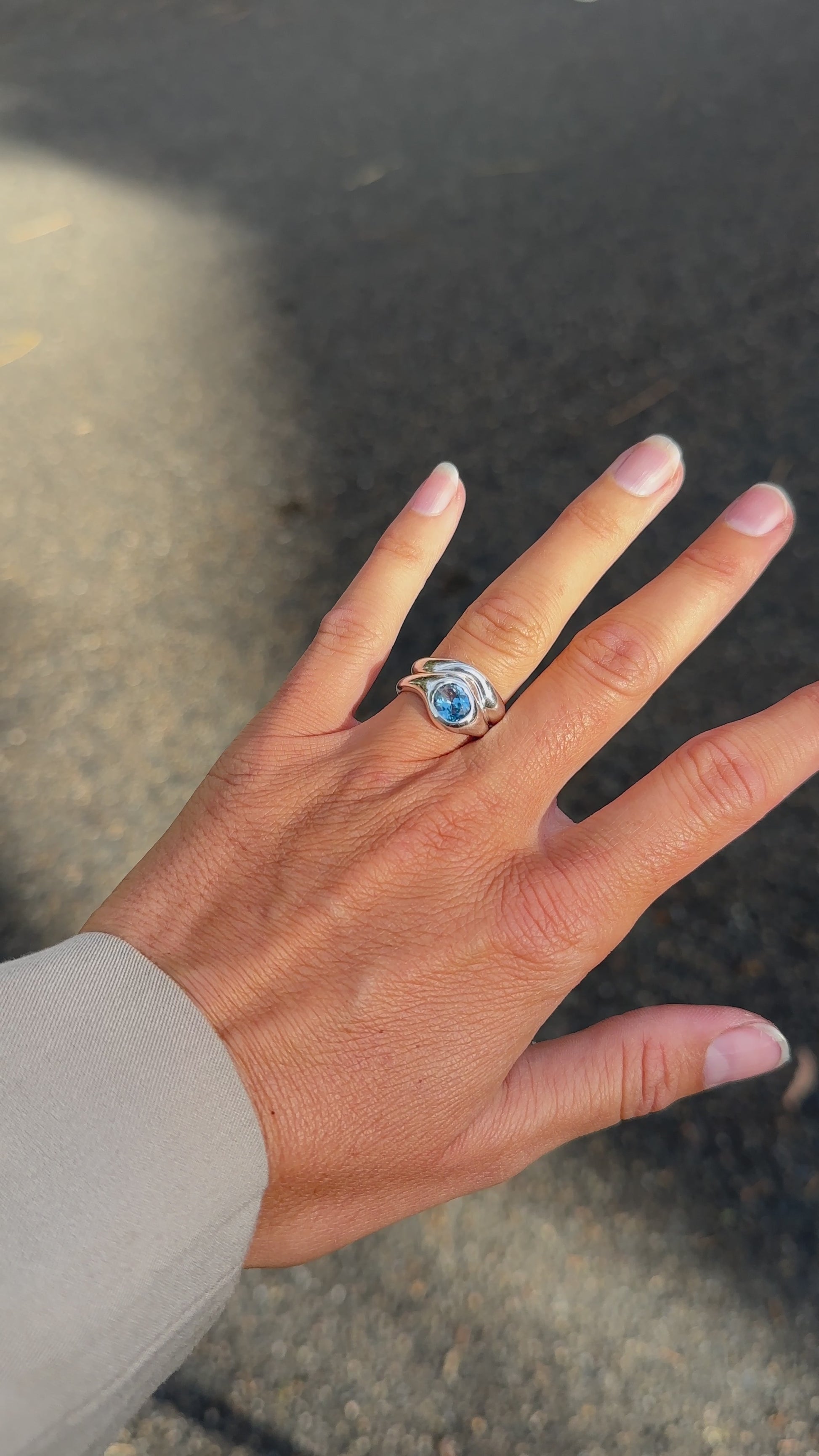 The Eos ring is hand-carved for effortless stacking, with flowing organic lines and a soft silk finish. Wear it solo or paired, it complements any stack with quiet strength.